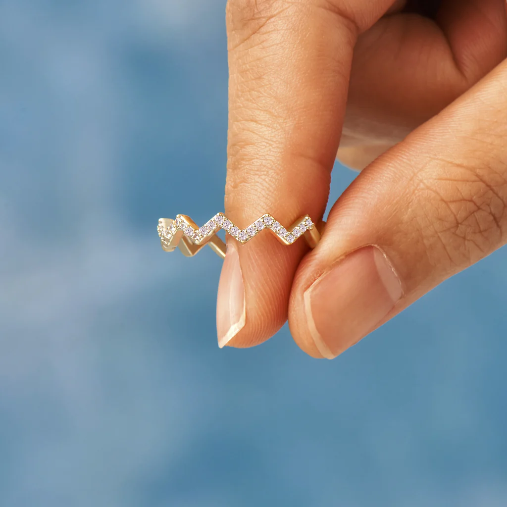 This wave ring beautifully symbolizes the highs and lows in life.